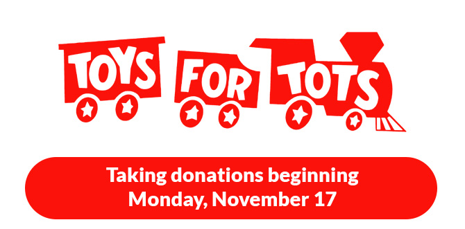 In addition to the ongoing Food Drive, which we will keep going through the holiday season, we will once again collect toys for the Toys for Tots Foundation.